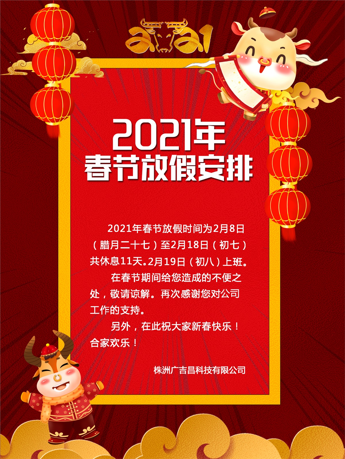 廣吉昌科技2021年春節(jié)放假通知