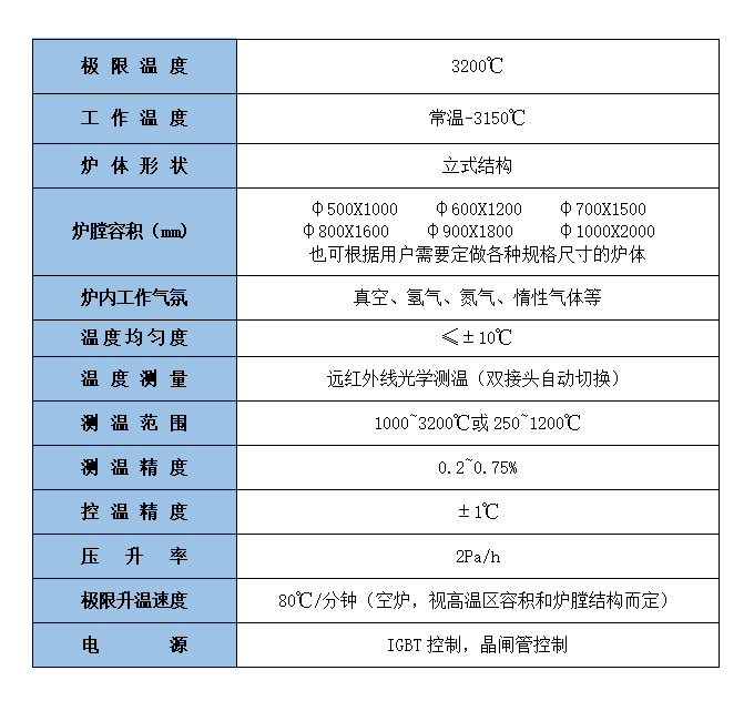 3150度立式石墨化爐主要應用負極材料石墨化、石墨烯膜石墨化,使之成為高導熱石墨膜。高溫石墨化爐也可應用于負極材料、碳素材料及碳碳、碳陶復合材料的燒結和石墨化,還可應用于工業陶瓷,粉末冶金材料等產品的高溫處理(高溫碳化、高溫燒結和高溫石墨化)。設備使用溫度達到3150℃。
