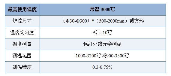 采用國外進口保溫材料和先進的爐膛結構,最高使用溫度高達3000℃。
